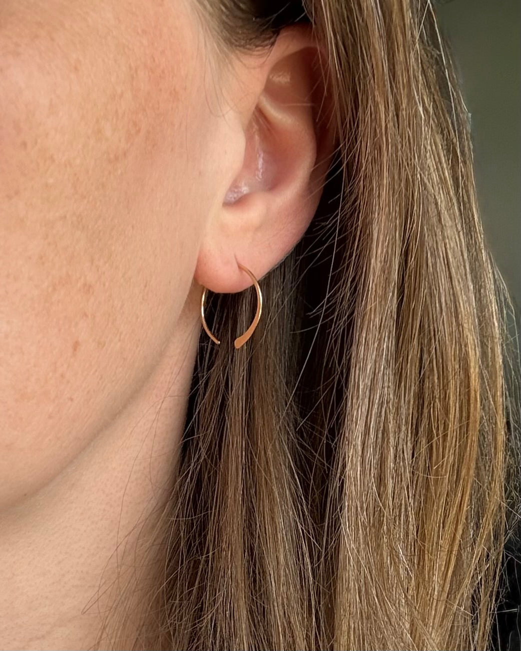 Our Large Moon Earrings are designed to shine. These hammered, detached hoops catch the light with every move, creating a subtle glow that’s both bold and timeless. Perfect for dressing up your everyday look or adding a little drama for a night out.